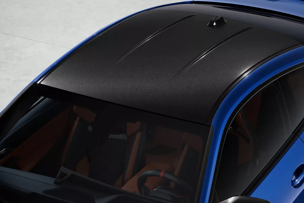 Como parte del concepto de construcción ligera inteligente, el techo de carbono (PRFC) contribuye a reducir el peso del vehículo y a bajar su centro de gravedad. Esto tiene como resultado una mayor agilidad y dinamismo en las curvas y una mejor aceleración y frenado.